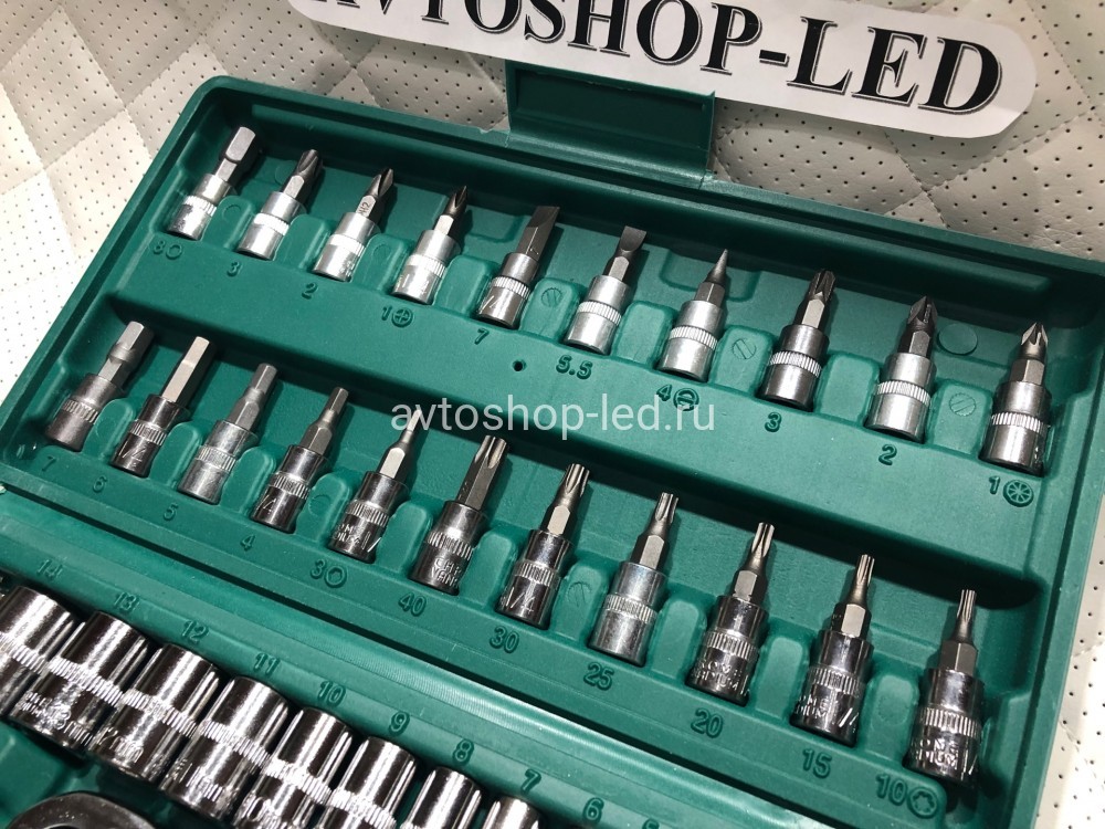 Набор ручного инструмента из 46 предметов подходит для работ с автомобилем, в доме, в мастерской, на даче, для ремонта и др. Автомобильный инструмент выполнен из специальной комплексно легированной стали с повышенным содержанием углерода. Прочные металлические замки и эргономичный ударопрочный кейс чемодан, делают набор головок с трещоткой эффективным и мобильным.
