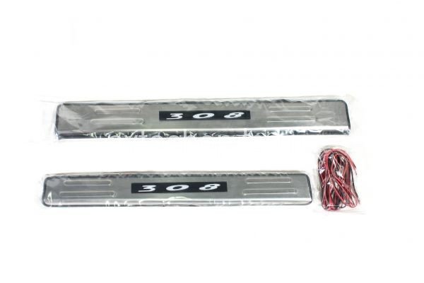 Накладки на пороги из нержавеющей стали с подсветкой. Комплектуется скотчем 3М для установки и проводкой