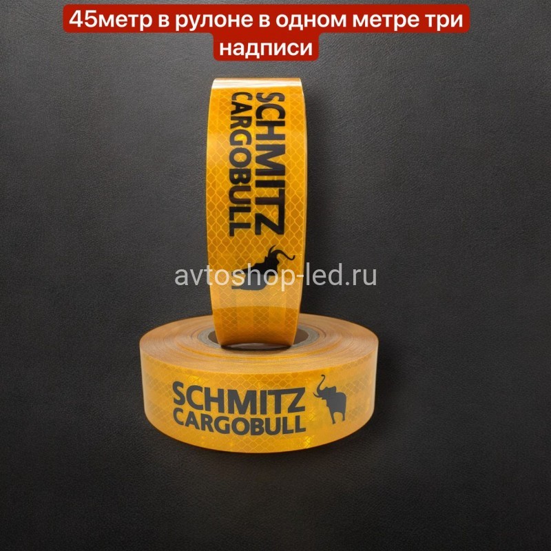 Лента светоотражающая Желтая 3М 45 метров с надписью Schmitz Cargobull.