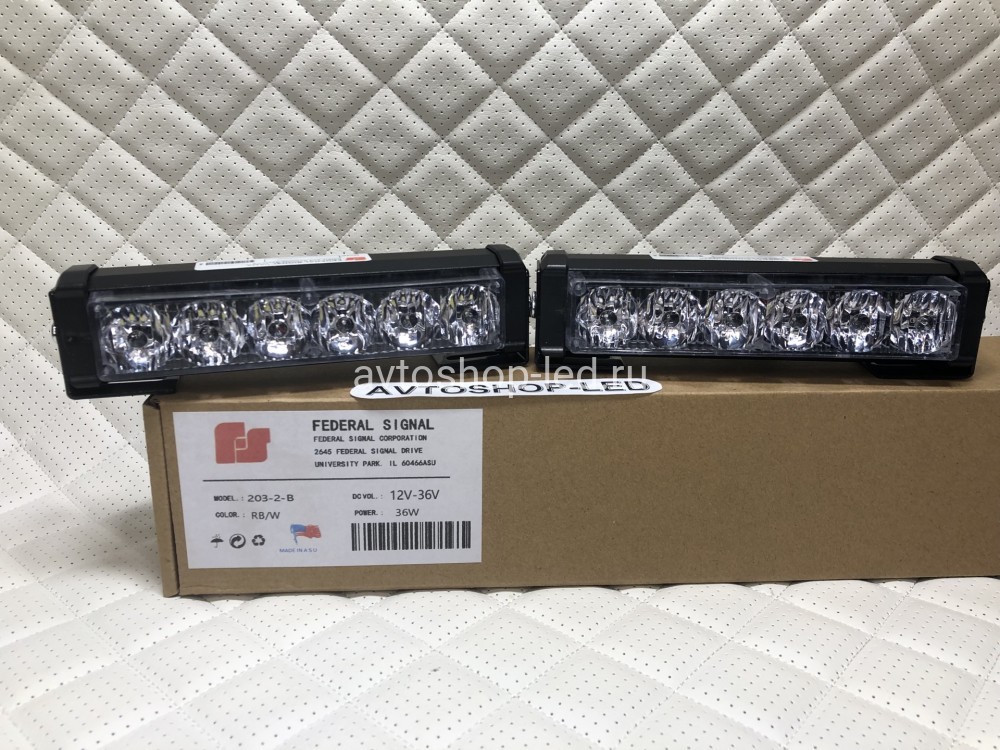 Светодиодные стробоскопы Federal Signal Желтые + Белые с пультом 12/24V под решетку радиатора– надежные и качественные светодиодные стробоскопы, для привлечения дополнительного внимания к авто.