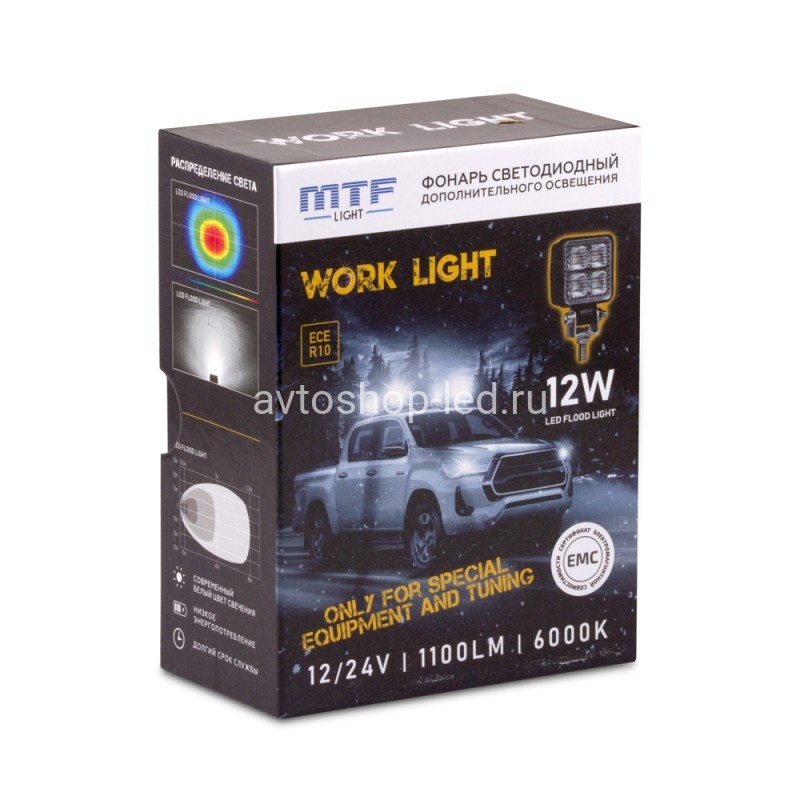 Фонарь светодиодный MTF LIGHT дополнительного освещения 12/24В, 12Вт, 1100лм, 6000К, квадратный, шт.