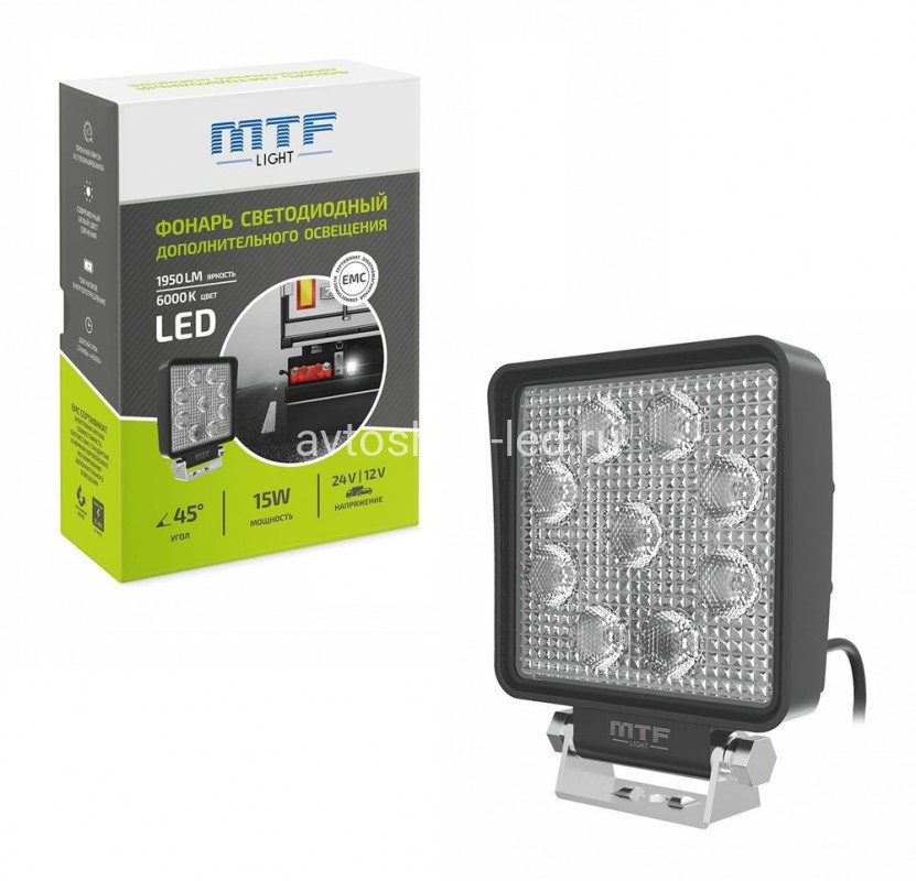 Фонарь светодиодный MTF LIGHT дополнительного освещения 12-60В, 1950лм, 6000К, квадратный, шт.