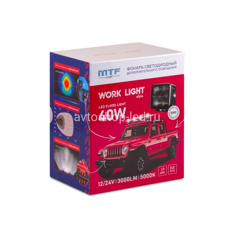 Прожектор фонарь светодиодный MTF LIGHT серия STYLE 12/24В, 40Вт, 3000лм, ECE R10, квадратный, 1 шт.
